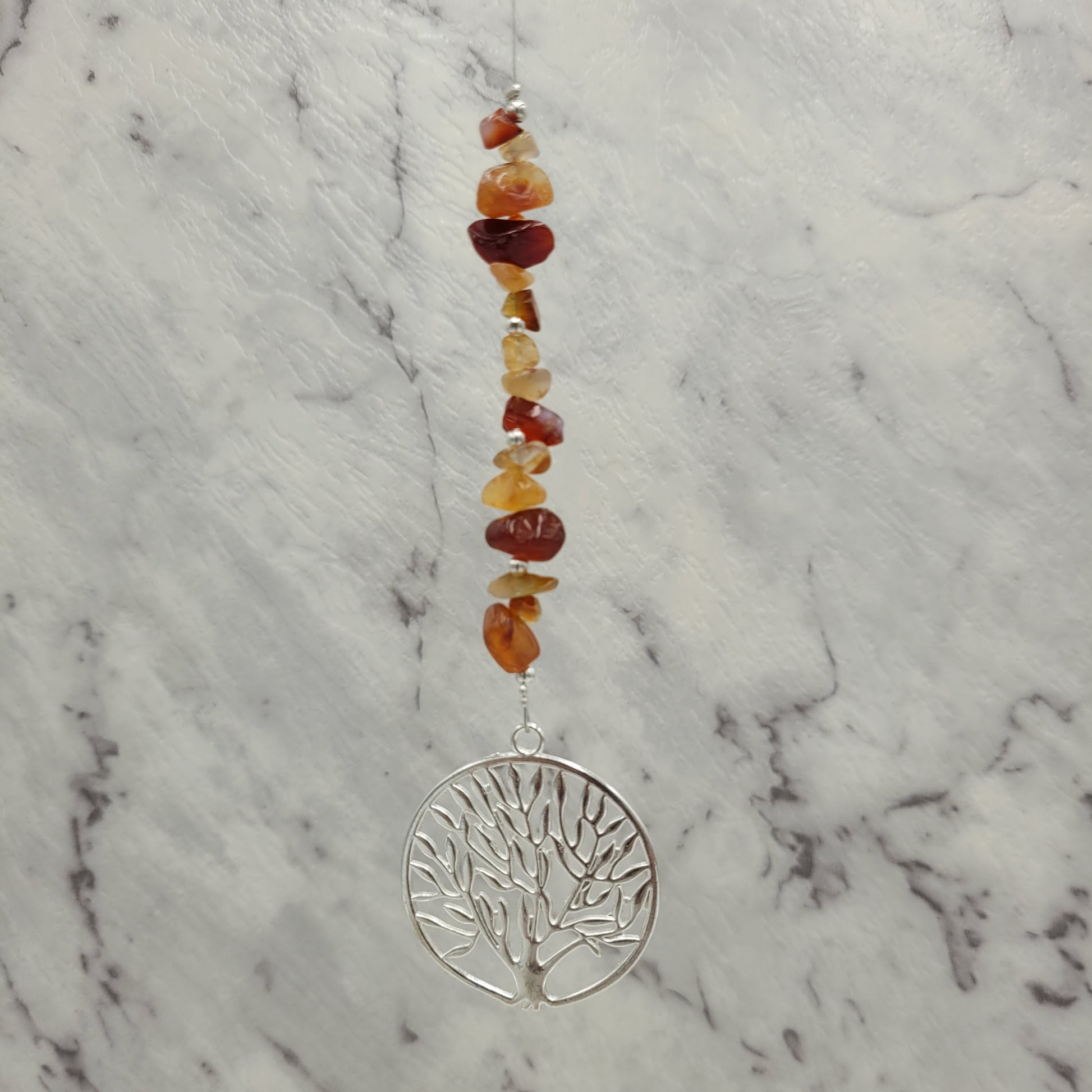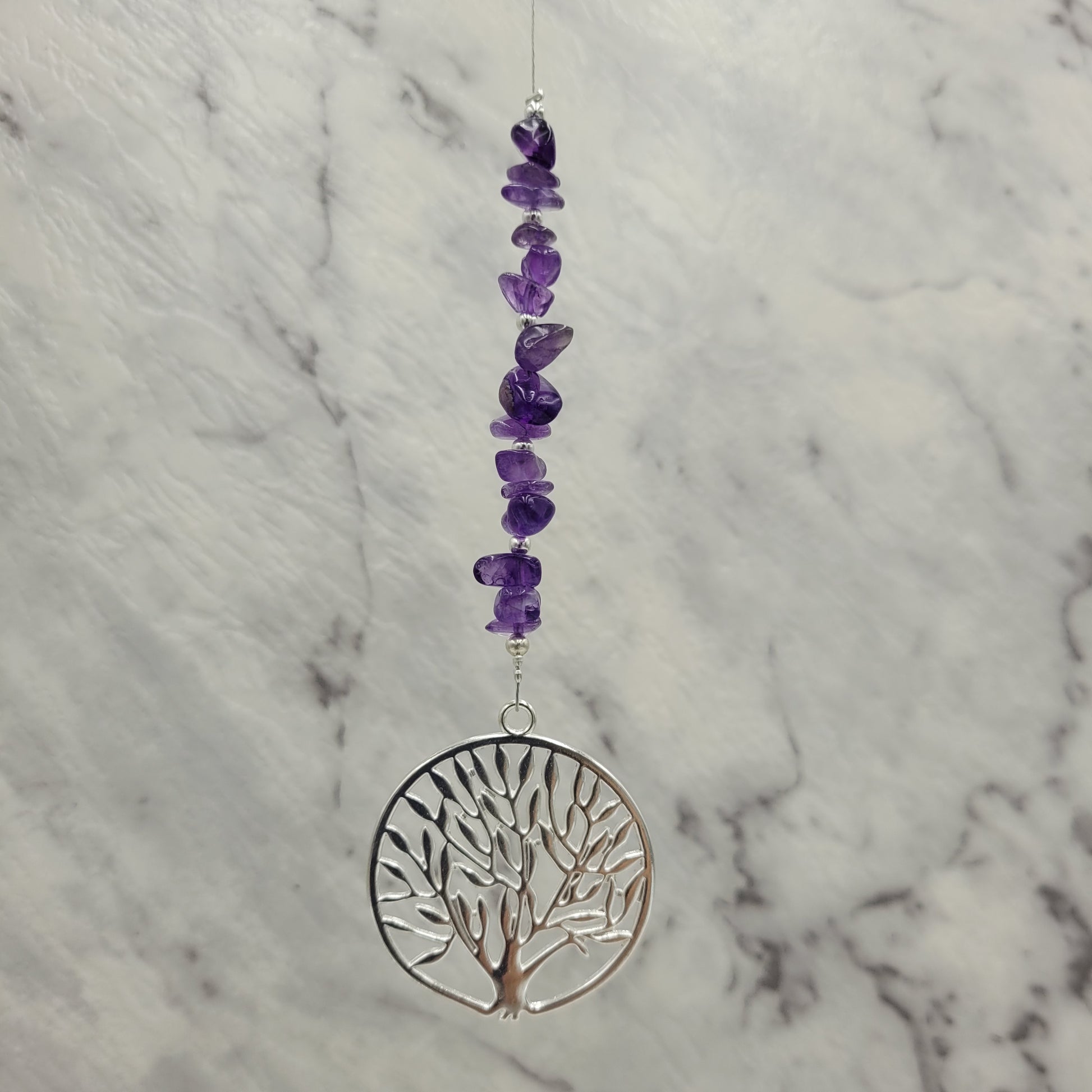 Let the mystical Tree of Life dangle in your window and bring a bit of earthly bliss indoors! Our beautiful suncatchers come in a variety of stones and colors, and cast a lovely rainbow of light when the sunshine hits them! Hang them in any window to harness the connection between earth and heaven!