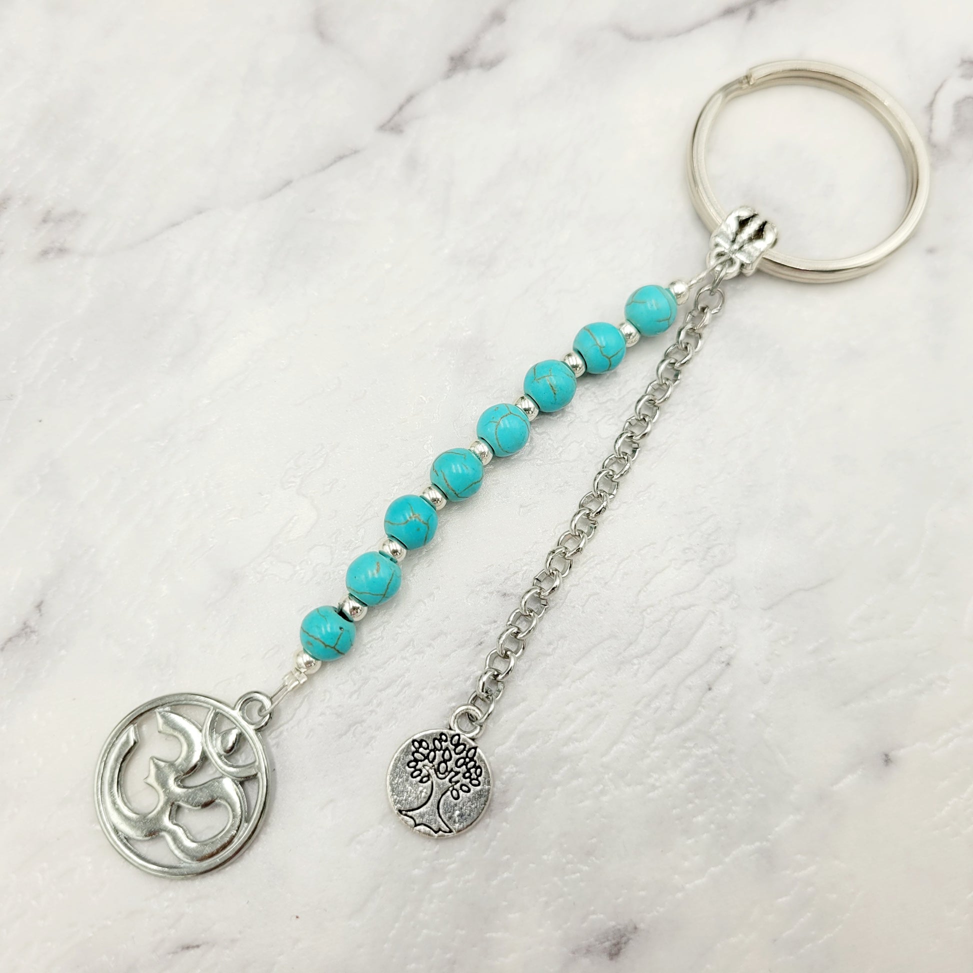 Let the Turquoise Om Crystal Charm Keyring be your guardian and connection to a world of intuition, spirituality, and protection. This charm keyring offers purification and protection from negative energy, while connecting you with heaven and earth. Feel your intuition and spirit soar with this elegantly crafted piece.