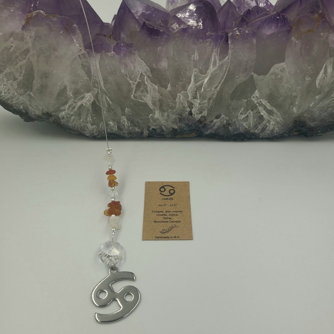Show your Zodiac sign with pride with this unique Zodiac Stone . Crafted with a hanging crystal Zodiac sign and matching birth stone, this symbol captures the beauty of your sign for all to admire, while also offering the healing power of the crystal. Discover a hint of mystery with this statement piece.